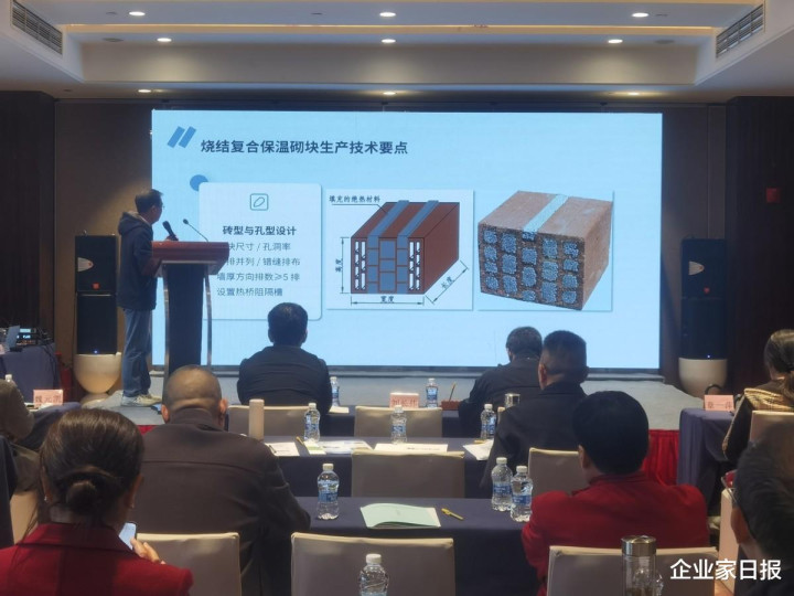 四川省建材工业科学研究院首席专家秦钢作《积极发展烧结保温砌块推动绿色低碳转型升级》专题报告。他结合《四川省居住建筑节能设计标准》DB51/T5027-2024对外墙传热系数的新要求,指出发展烧结复合自保温砌块是满足“好房子”建设需求的必然选择。他详细介绍了烧结保温砌块的技术基础、产品性能、生产工艺及工程应用案例,强调其在节能、安全、耐久、一体化等方面的优势,为行业产品升级指明了方向。